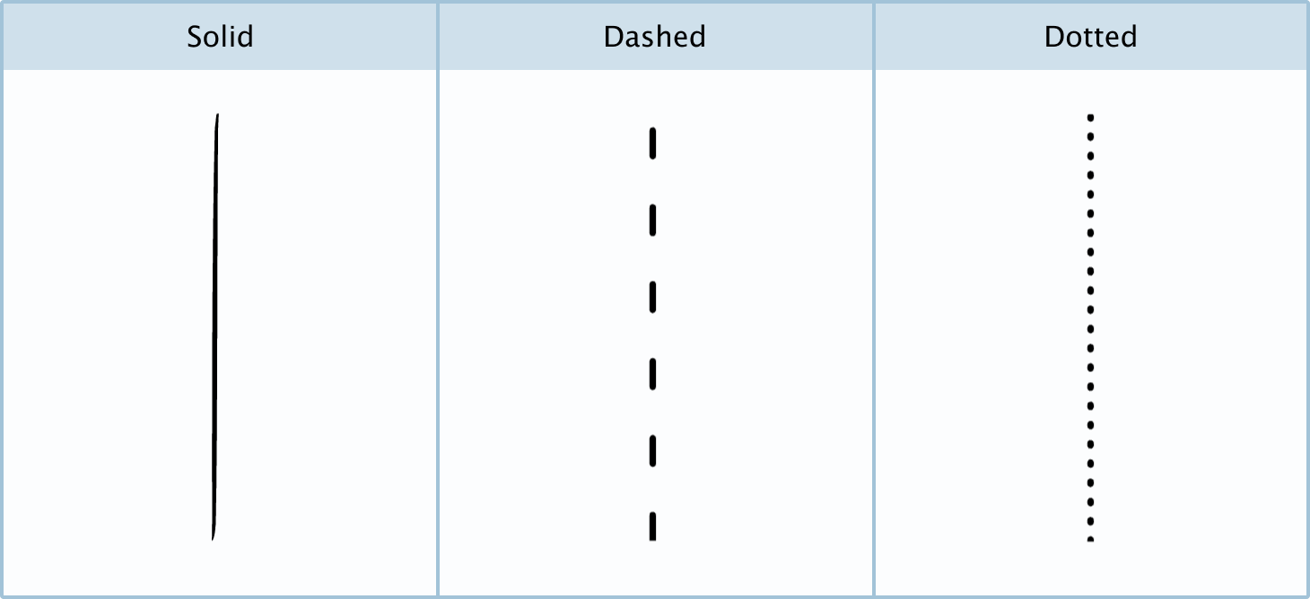 Dotted: Dotted lines can be used the same way as a dashed rule.