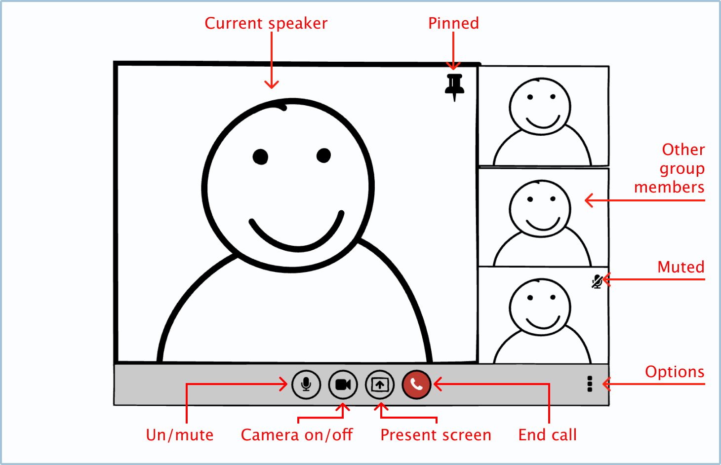 - Present screen button: This button allows the user to share their screen so that the other members of the call can see it.
