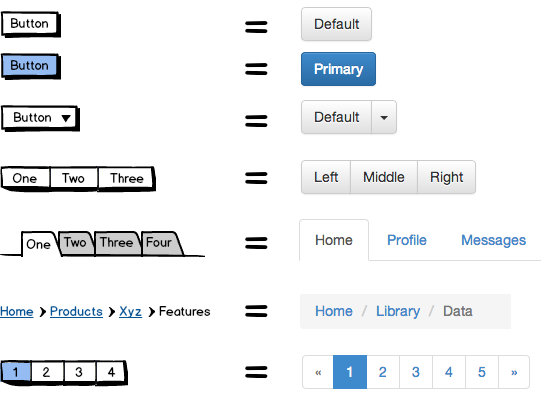 If you already have a design system, great. If not, you can start with a customized download of Bootstrap or Foundation. The next step is to create a mapping between it and the controls in your wireframing tool.
