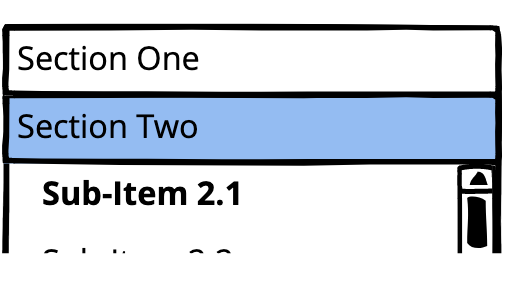 A Dropdown menu (or Combo Box, Pull Down menu, Picker) gives you a list of items to select from. It’s a common element in forms, setting pages, and quizzes.