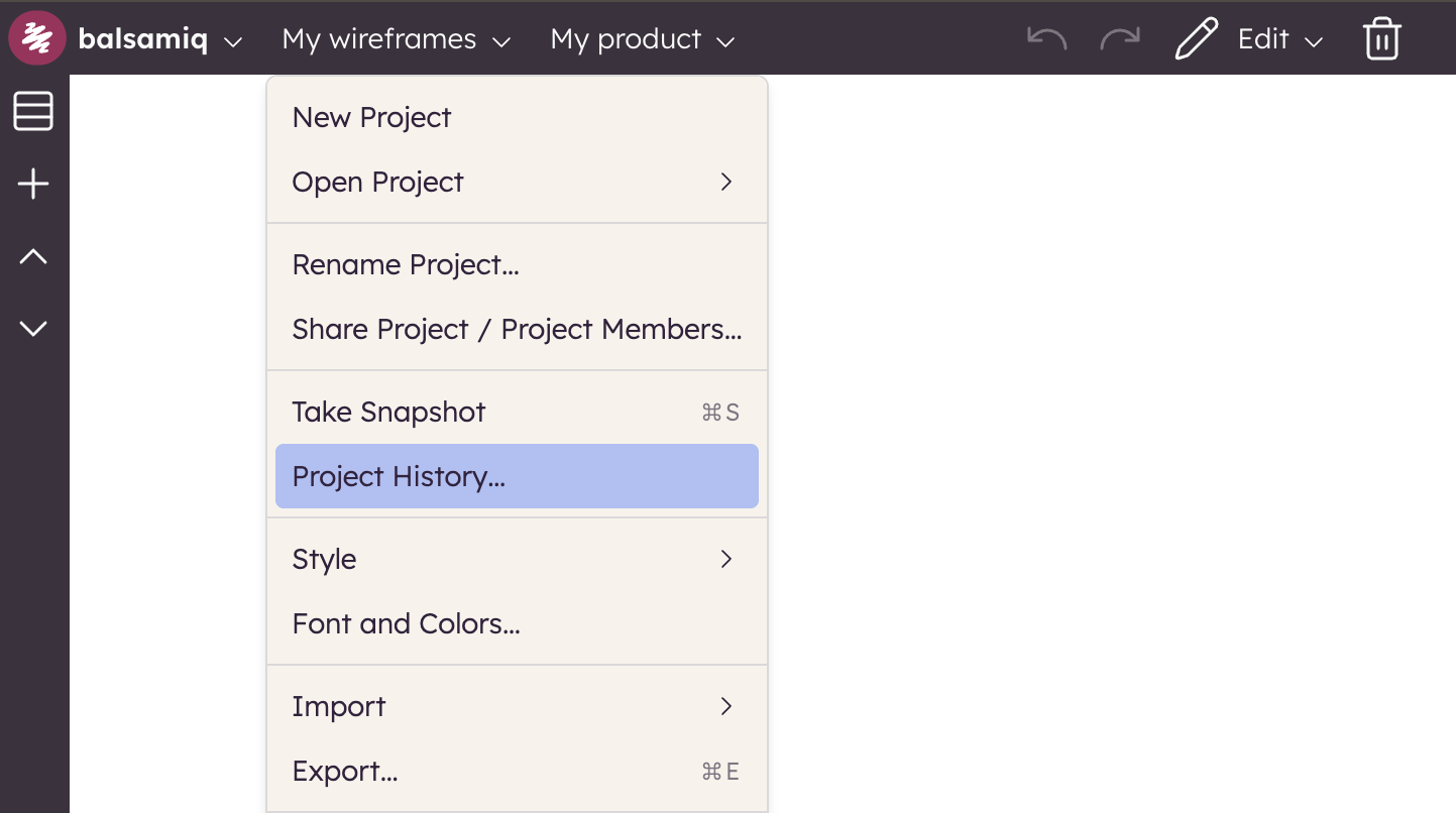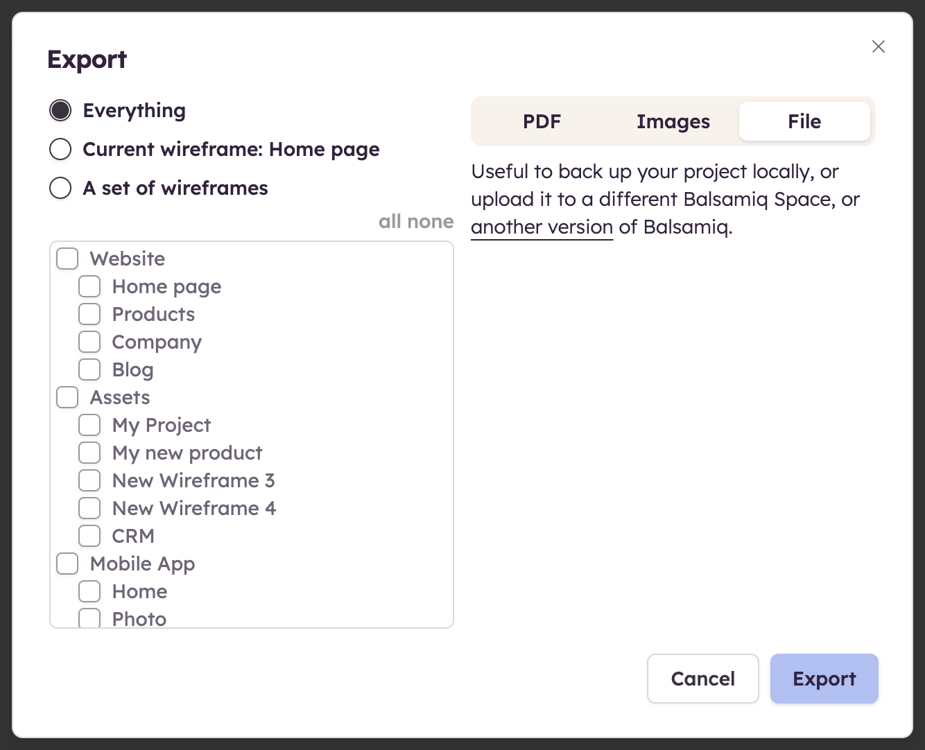 This option also allows you to move a project to a different Cloud Space or to a different Balsamiq product.