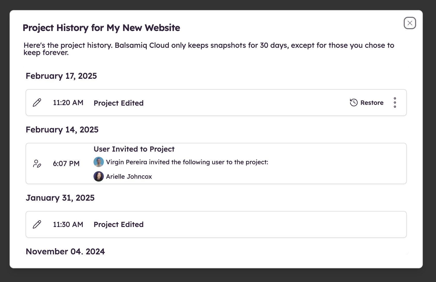 Because your Balsamiq Cloud subscription allows for a finite amount of projects, managing their number can become very important. In this case, we suggest you do the following: