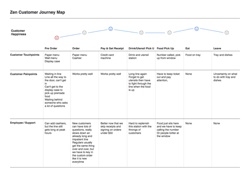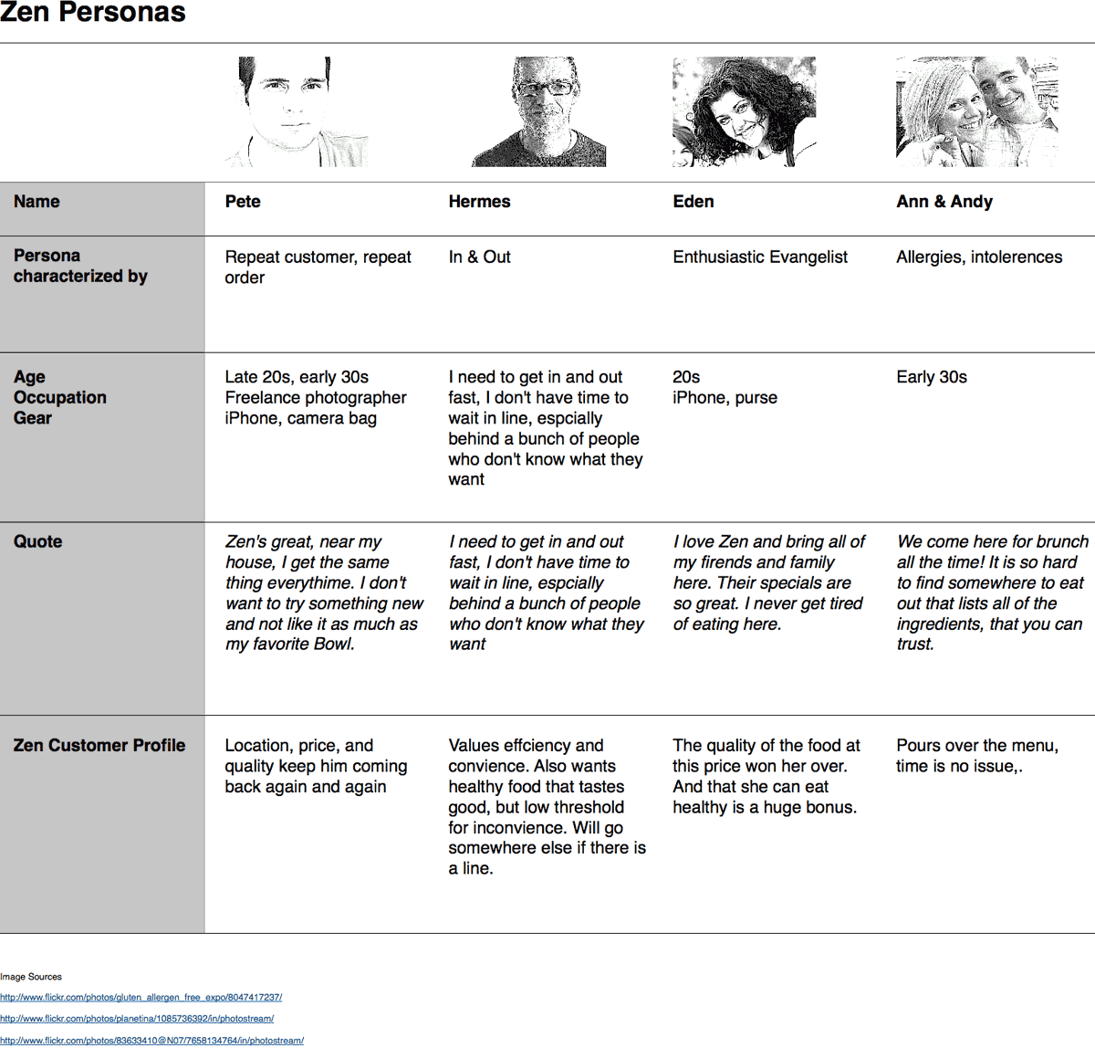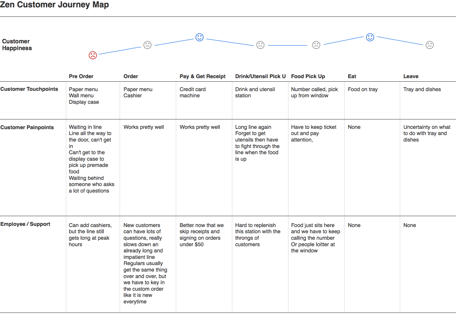 Adam and his team provided us with the current analytics: average spend, dining time, size of parties. Then I went with some guerrilla research tactics and interviewed customers while they waited. After the interviews, I pulled in my team and we quickly sketched up a journey map and the personas.