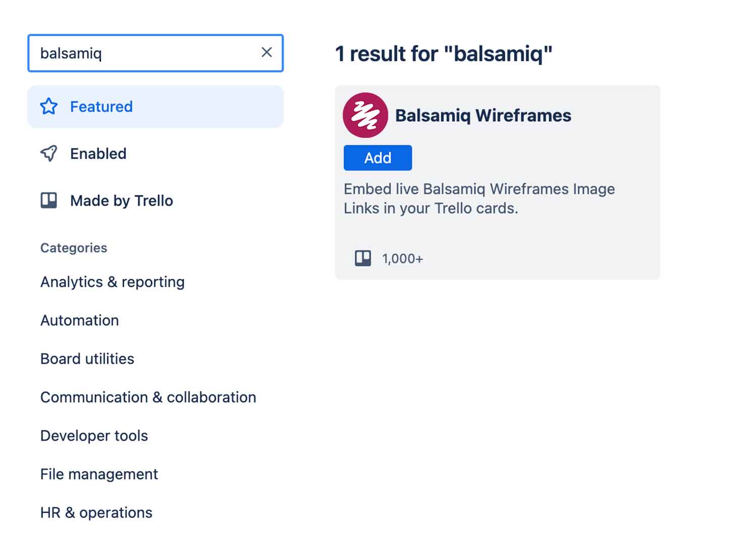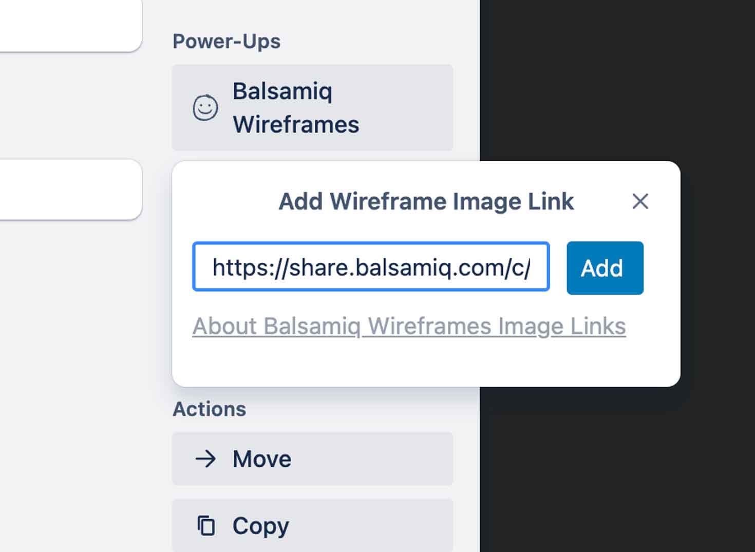 If you haven't already, go to the Balsamiq Power-Up page in Trello. Click “Add Power-Up.”