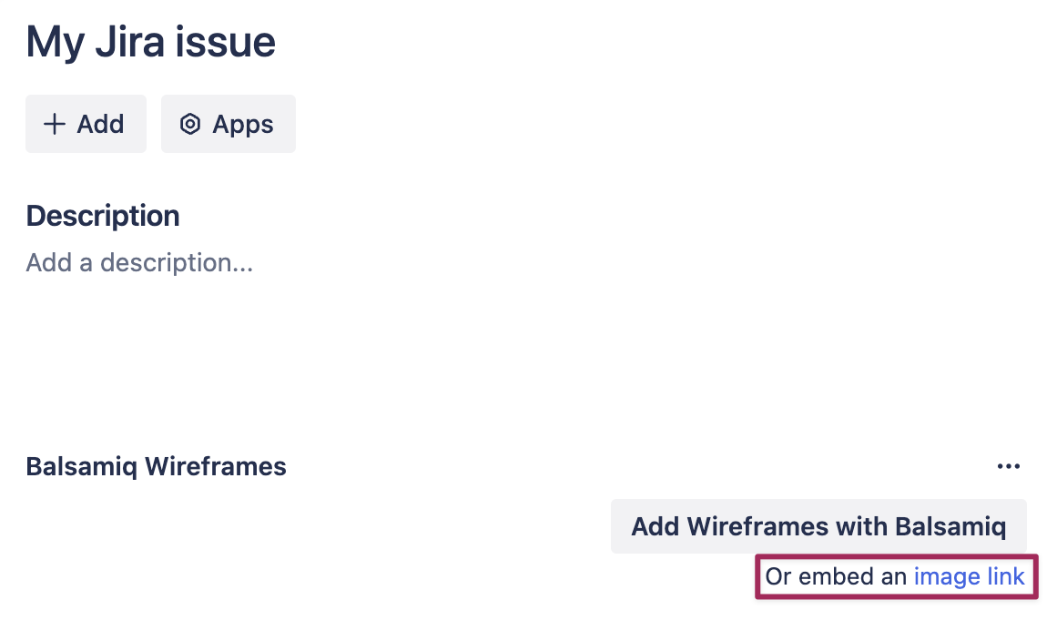 Once created, you can use the Image Link to embed a wireframe to another Jira issue by using the dedicated option in the Balsamiq Panel.