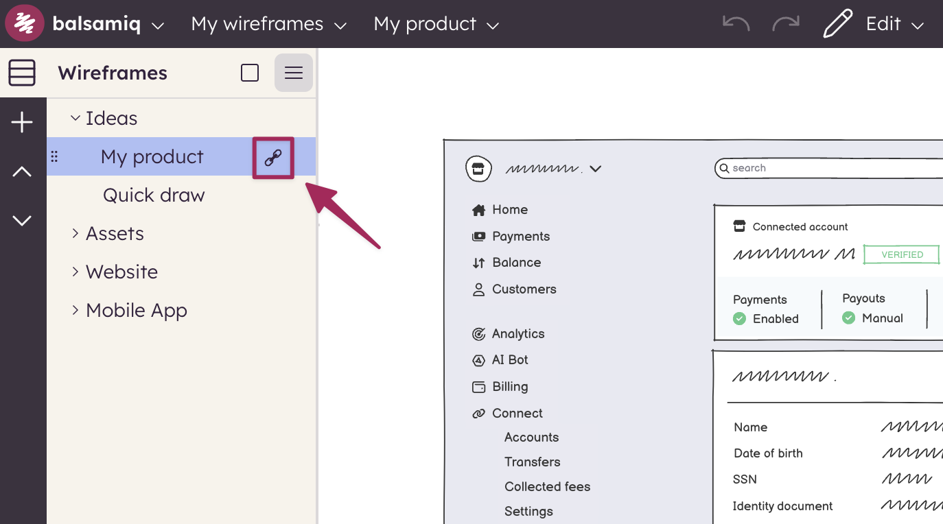 If you need to copy the link again (or manually update the image), you can click on the wireframe's link icon from your navigator.