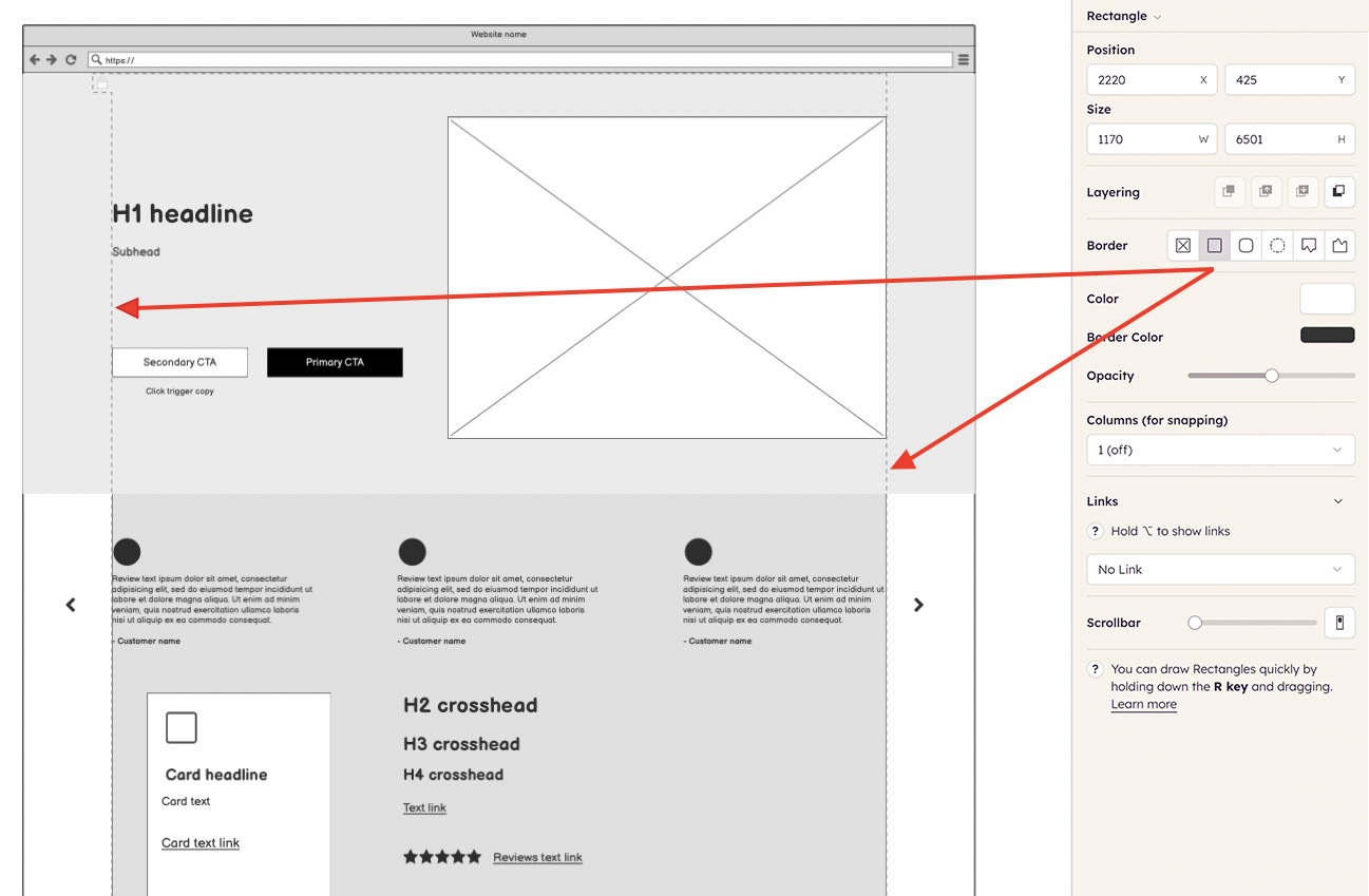 Once you have your copy document ready and roughly pre-structured, it is time to move it into a wireframe.