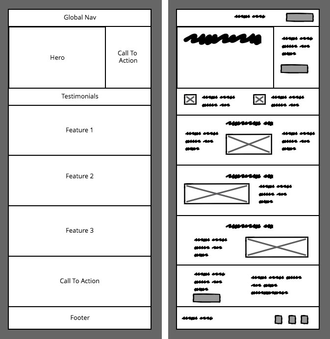 For our landing page I created an outline, based on a walk-through of the features of the product and we reviewed and refined this outline. From this baseline of understanding I start working visually.