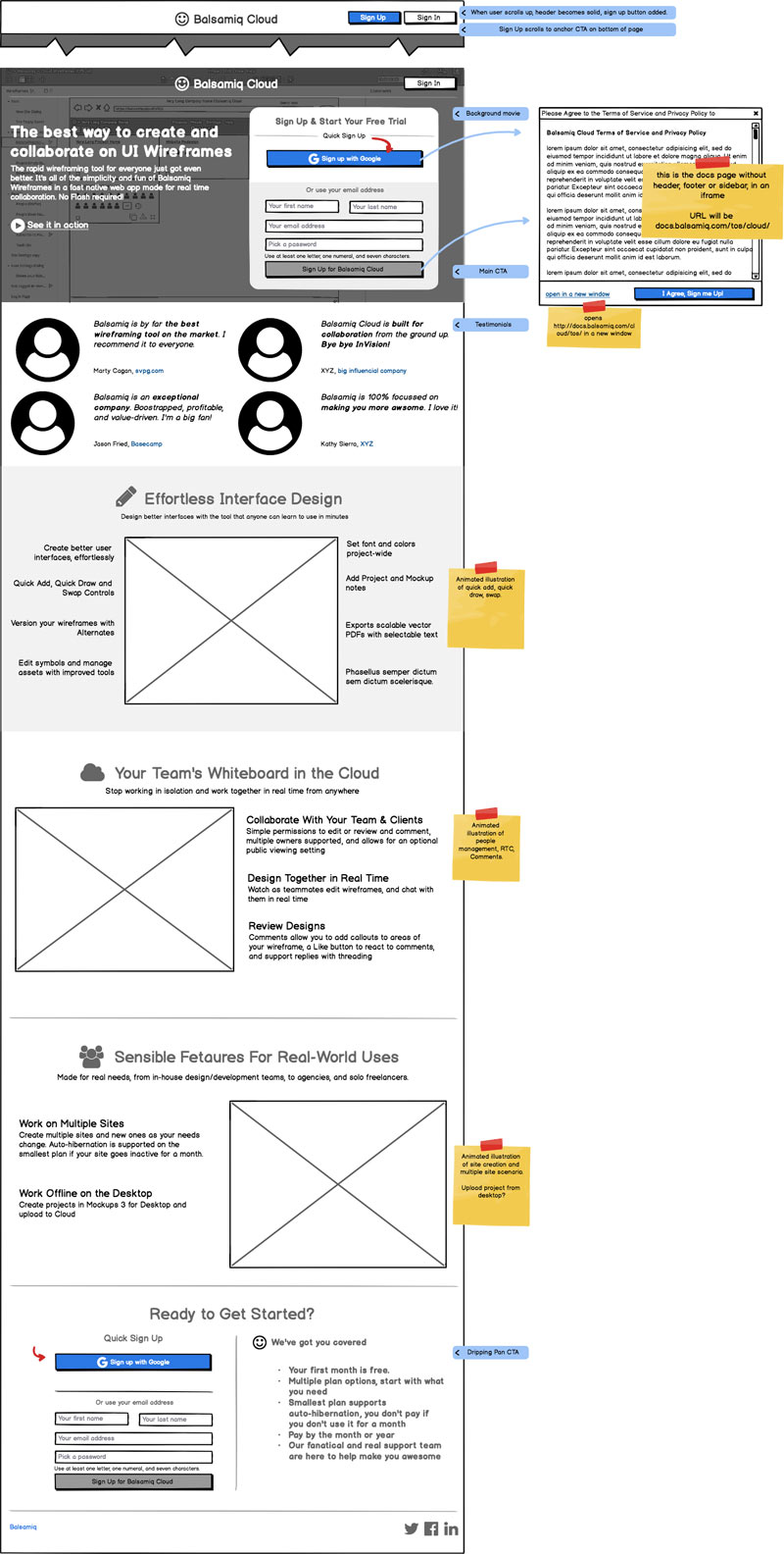 In this article we'll go through the landing page for Balsamiq Cloud, covering the process for a typical website project from start to finish.
