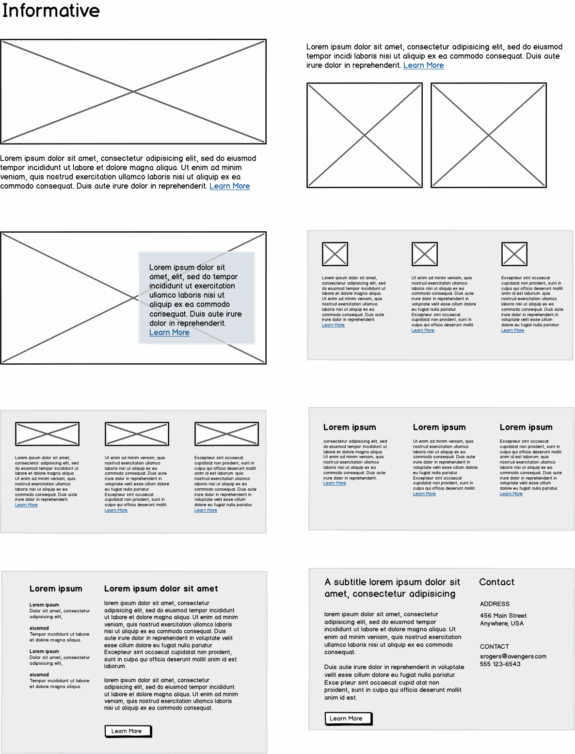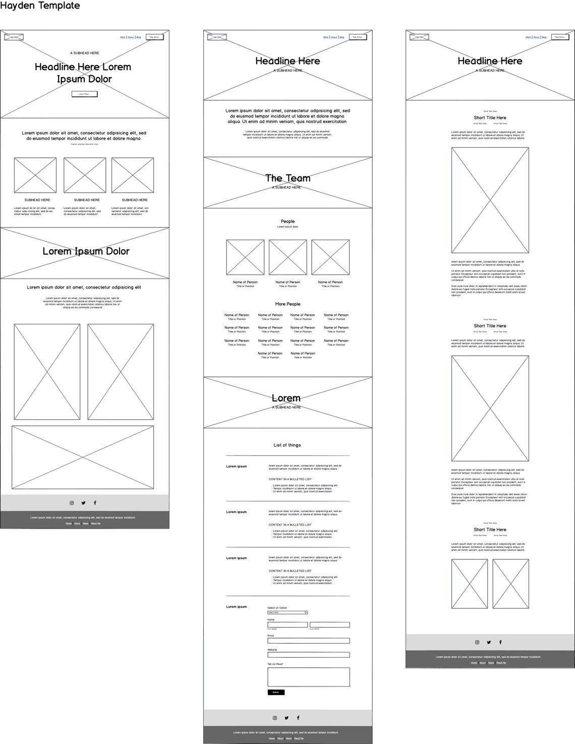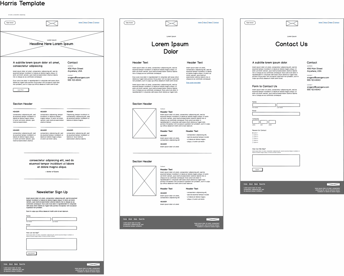 - Wireframe each page you plan to use for your site from each template