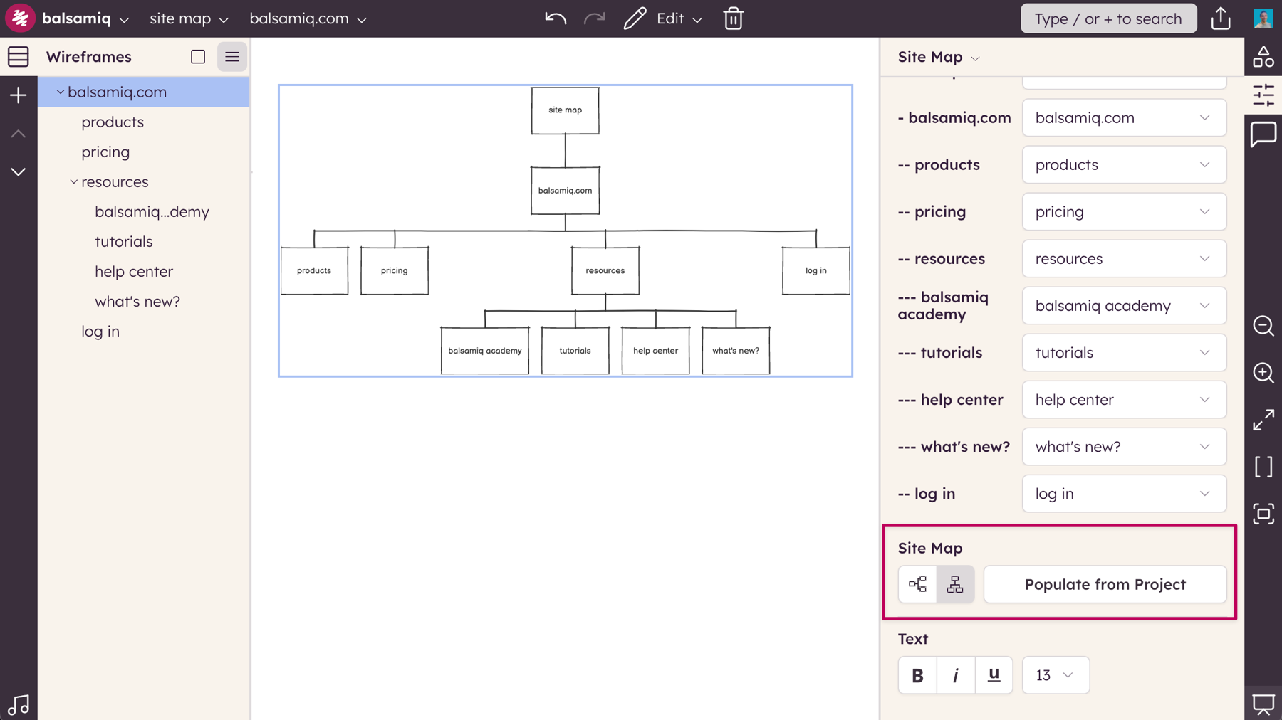 Next to the options for changing the orientation in the Property Inspector is a button that allows you to automatically populate a site map based on the order and structure of your wireframes in the Navigator Panel.