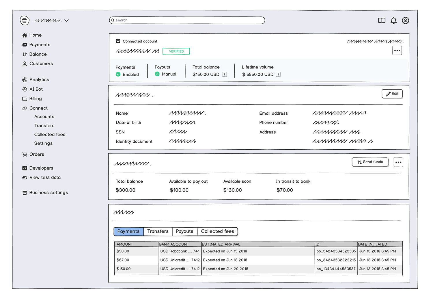 App dashboard wireframe