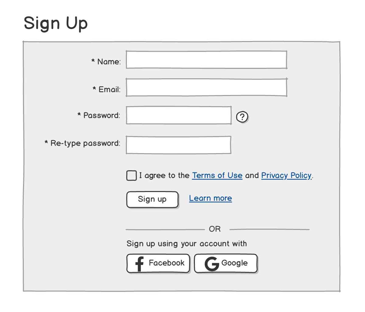 Signup form wireframe