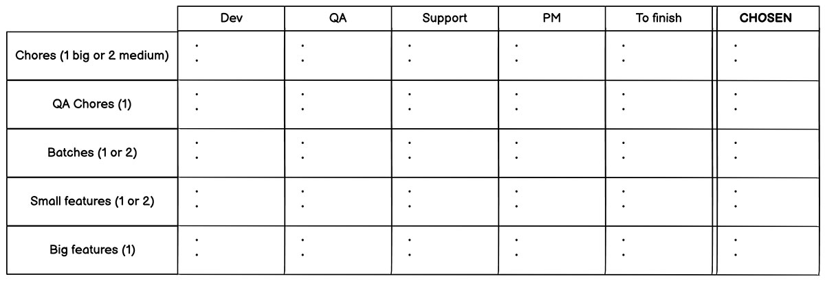 This worked well for a while, but over time we realized that the To finish column kept on growing. We were over-committing at the beginning of the quarter, and didn’t manage to finish everything we had planned. We needed a way to help us better estimate our efforts.