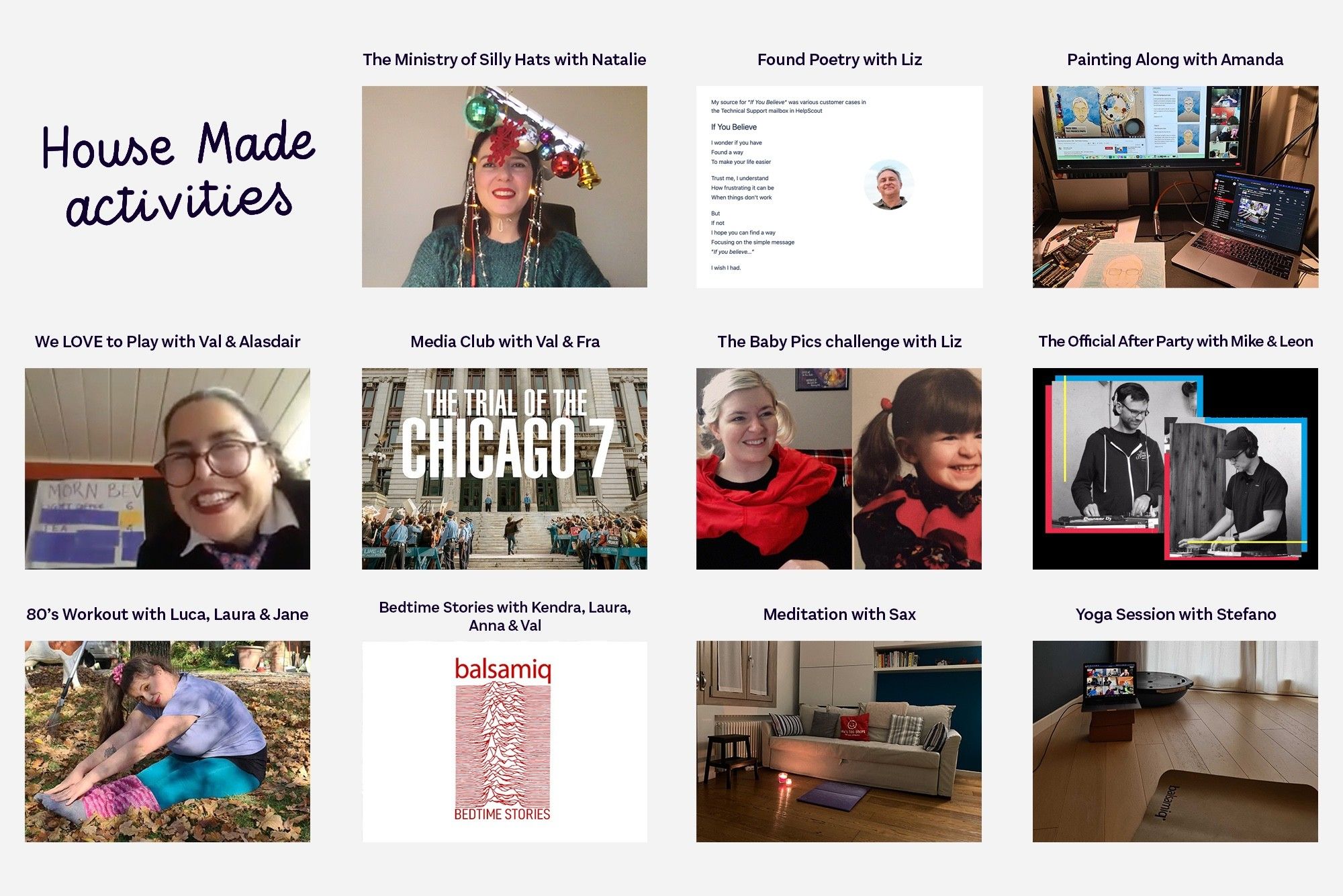 The biggest element of novelty we added to the retreat was hiring 3 virtual workshop leaders: