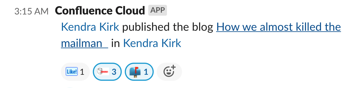 Although for the most part we did the activities on our own, they produced a surprising amount of togetherness. The writing challenge “Storytelling with Natalie” was simply writing a personal story (funny, serious, or otherwise) in a Confluence Blog Post. We already have a Slack channel with notifications when a personal blog post is published, so throughout the week we were notified of the 9 stories people had written, and could spend time commenting back and forth on the personal tales that ranged from very serious to incredibly funny.