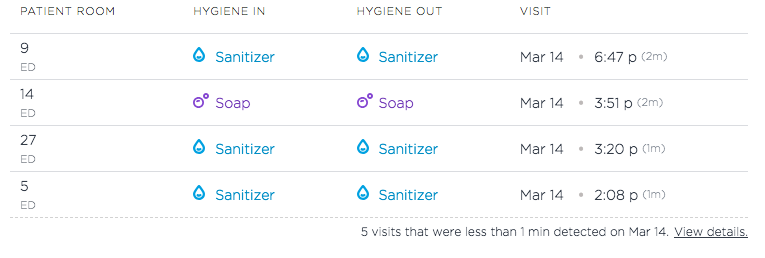 Screenshot of Hand Hygiene activity. Adding the disclaimer about short visits increased transparency regarding the data we collect and its accuracy.