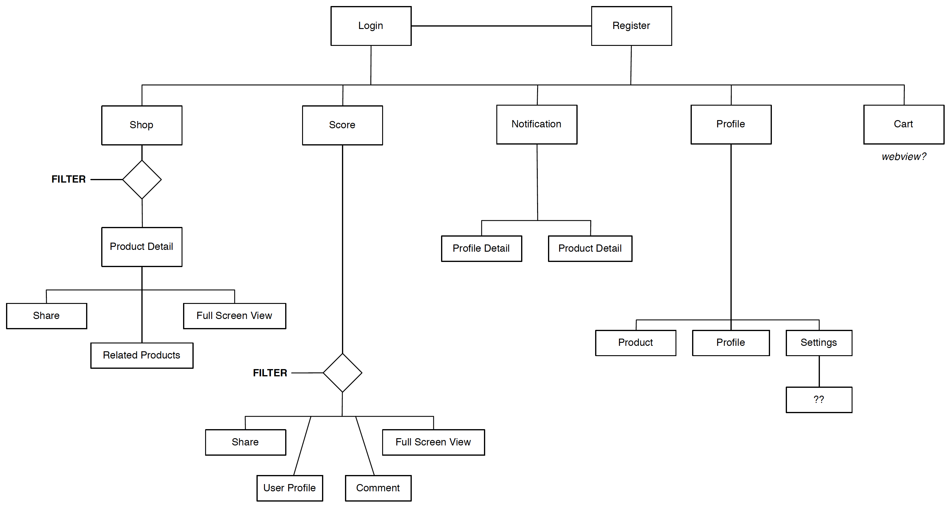 A screen tree is the mobile equivalent of a site map. You can create one in Balsamiq using the site map feature, or simply use a pencil and paper and sketch them out.