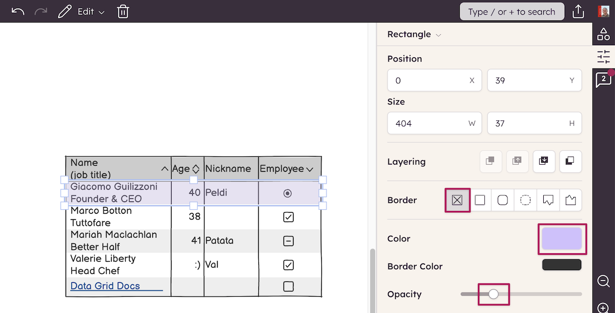 - Move and resize the rectangle to overlay your other control (Data Grid in this case)