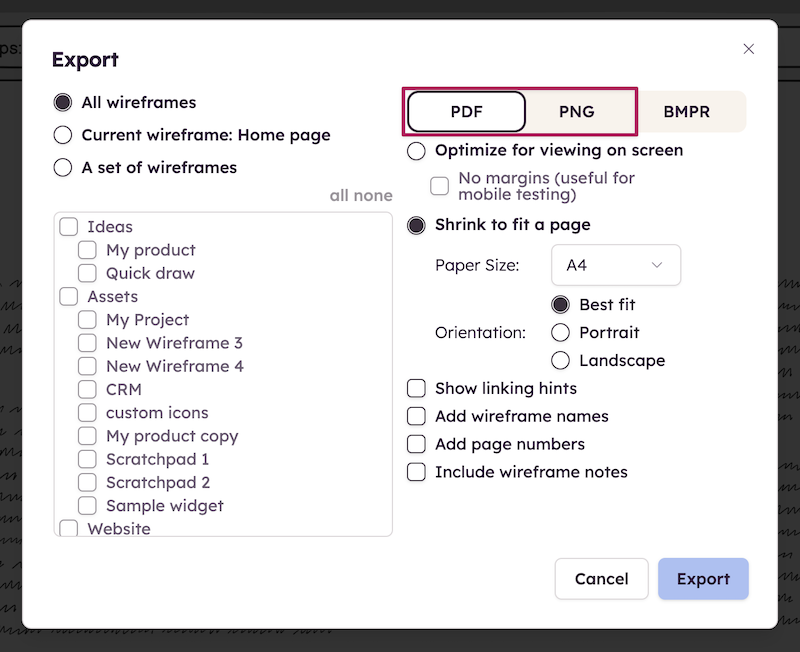 Another option, especially useful if you linked your screens together, is to export the project to PDF - your colleagues will be able to click through it in any PDF reader.