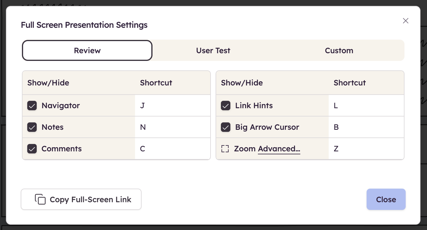 - You could send them a direct link to a pre-configured full-screen view and watch them trying to use it over screen-sharing.