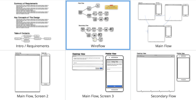 Sending a link is not appropriate in this phase. This is the time to tell a story. What you want is to go through the wireframes one by one, in the right order, zooming in where needed, explaining both the high level concepts, and the details when they’re needed – but not too many details, or it will get boring!
