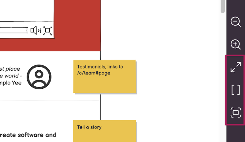 A neat trick before you start presenting is to double click on the actual size, zoom to width or zoom to fit icon – whichever works best for your case. This will zoom ALL wireframes at once, pan every screen to the top-left, and remove all selections, which could be distracting during your presentation.