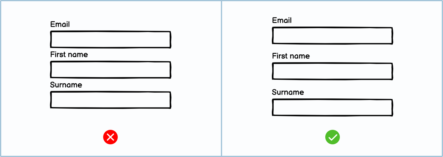 Make sure your text inputs are far enough apart, so your user doesn’t click on the wrong one by mistake. Eight pixels is the usual standard gap between touch targets.