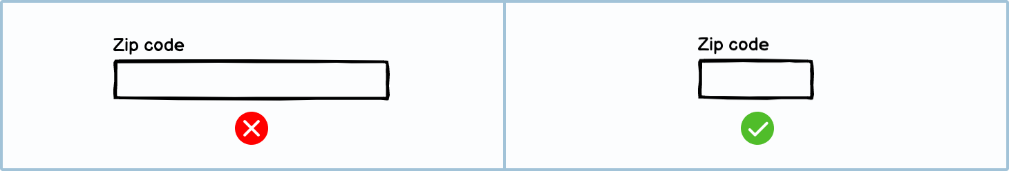 The width of a text field implies what should go into it. Having a long text field for a short entry (e.g., a zip or pin code) can confuse the user and make them feel like they filled in the wrong thing.
