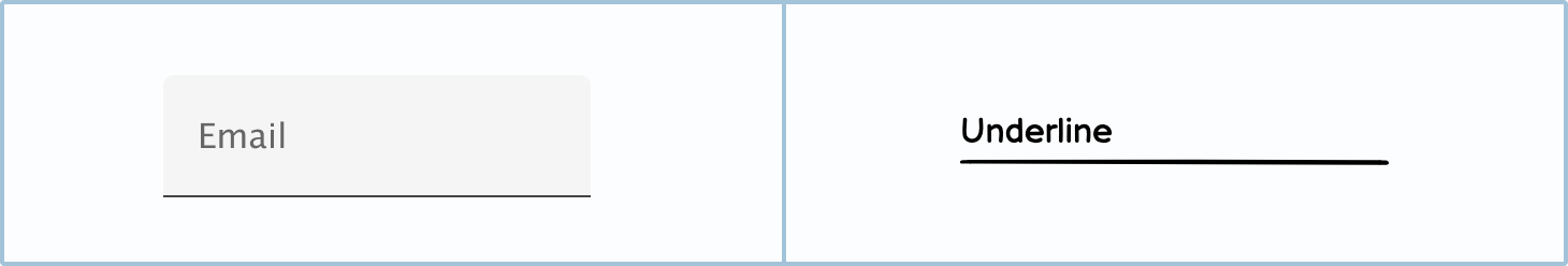 The more recent underline input field, popularized by Google’s Material Design, is slick and elegant. It is often used in Android apps.