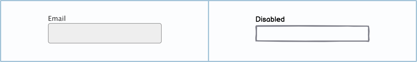 A disabled text input lets the user know that they can’t enter any text into it. This will usually be because they have to select something else first.
