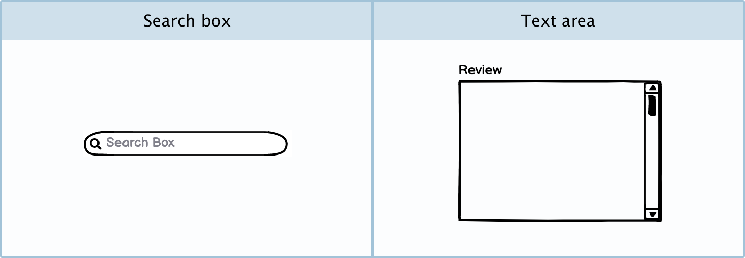 Text area: The text area input allows the user to fill out long bodies of text. This is ideal for making a post or review. In Balsamiq, you can easily toggle the scrollbar on or off.