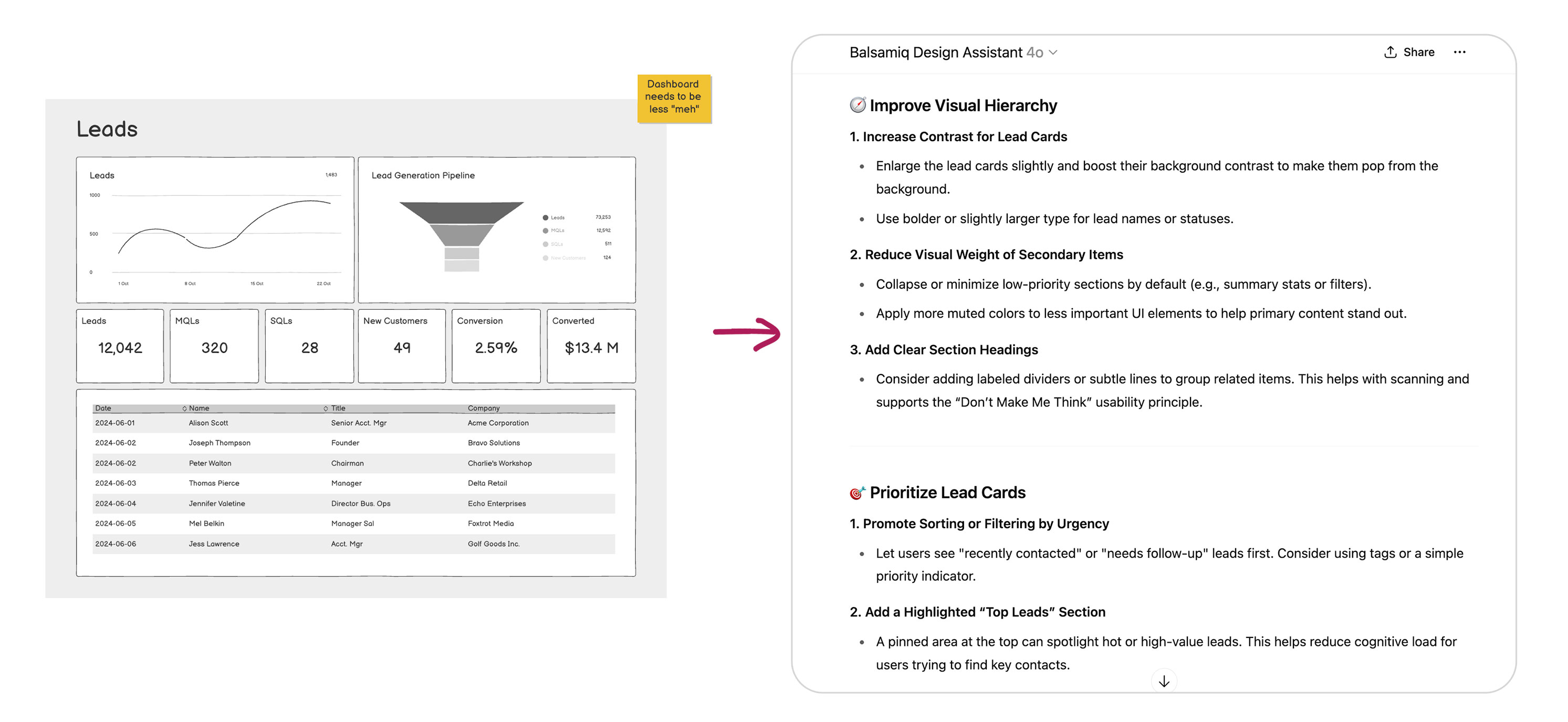 When paired with Balsamiq, you can spin up wireframes, feed them to your GPT, and in minutes, have actionable feedback—no lengthy meetings required.
